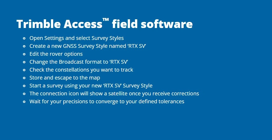 All newly purchased Trimble® R980, R12i, R780, R580, and R750 GNSS receivers come with an activated Trimble RTX subscription for the first 12 months. Annual renewal options will be available for ongoing access.